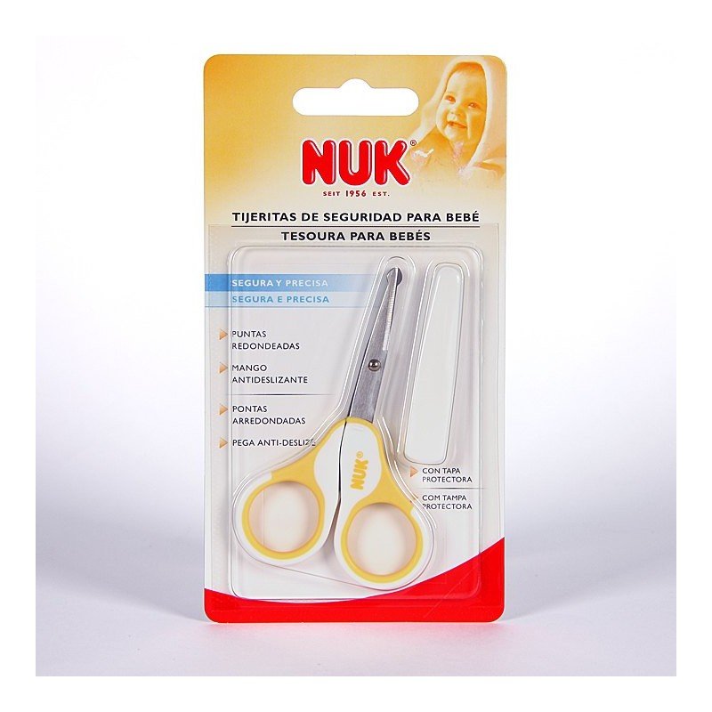 Tijeras NUK de seguridad Corta uñas 4 colores disponibles para seleccionar. Corta las uñas del bebé de forma segura y precisa. Con puntas redondeadas y tapa protectora.Mangos antideslizantes.