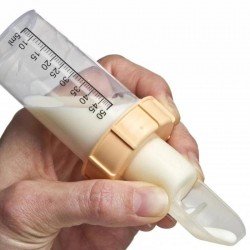 Es una forma sencilla de alimentación con biberón-cuchara. Gracias a la membrana con válvula unidireccional situada entre el recipiente y la boquilla, el flujo de leche puede regularse fácilmente apretando las cámaras de la boquilla.