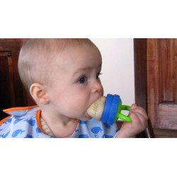 Las frutas o verduras congeladas brindan alivio al dolor y brindan nutrientes saludables al bebé. La bolsa de malla permite que el niño se sienta seguro en frutas y verduras congeladas. Reutilizar y reemplazar la bolsa de malla. La manija hace que sea fácil de sostener. Sin BPA y apto para lavavajillas.