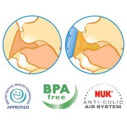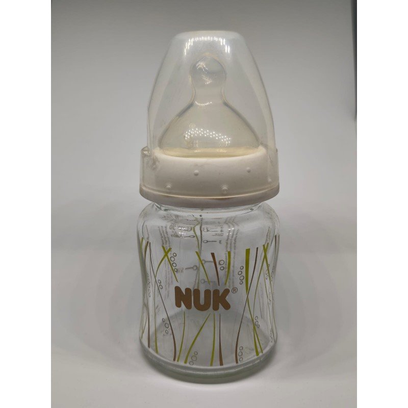 Biberón o pacha de 5 oz. de vidrio. Marca Nuk. Anticólico. Mamón o tetina ortodontica m. PRODUCTO 100% ALEMÁN