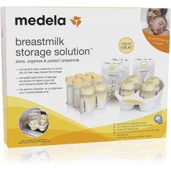 Incluye: (6) botellas de 5 onzas, (6) tapas de etiquetado, (6) recipientes de 2.7 fl oz con tapas, (20) bombear y guardar bolsas de leche materna, (1) bandeja organizadora, (1) guía de almacenamiento de leche materna imán